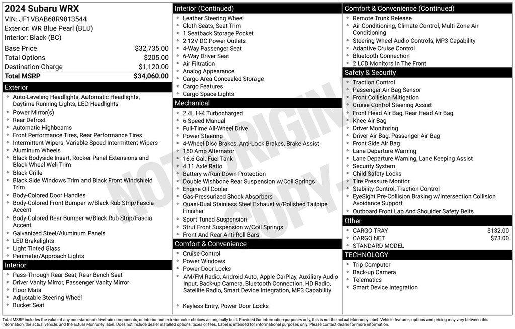 6-Speed Manual, WR Blue Pearl, *ALL WHEEL DRIVE*, *APPLE CARPLAY & ANDROID AUTO*, *EYESIGHT Driver Assist*, *LOCAL TRADE*, *OIL CHANGES for LIFE*, Standard Model. Certified. WR Blue Pearl 2024 Subaru WRX AWD 6-Speed Manual 2.4L DOHC