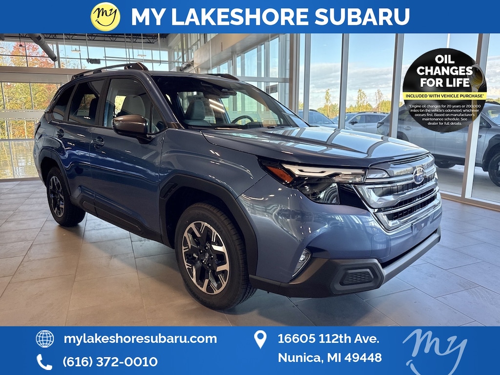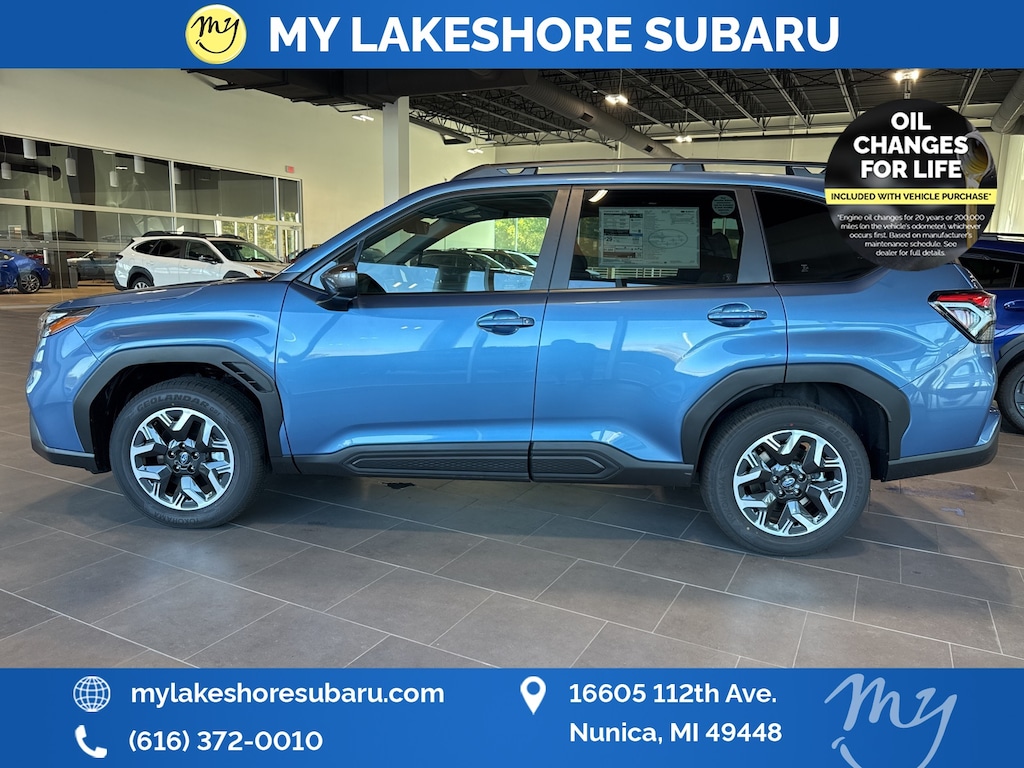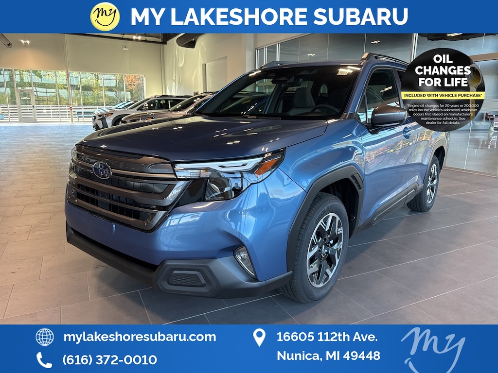 * Although every reasonable effort has been made to ensure the accuracy of the information contained on this site, absolute accuracy cannot be guaranteed. This site, and all information and materials appearing on it, are presented to the user "as is" without warranty of any kind, either express or implied, including but not limited to the implied warranties of merchantability, fitness for a particular purpose, title or non-infringement. All vehicles are subject to prior sale. Price does not include applicable tax, title, and license. Not responsible for typographical errors. **The arrival timeline is an estimate. It may vary due to circumstances beyond Subaru’s or the retailer’s control. Disclaimer: "There will be a surcharge applied to all credit card transactions that does not exceed our cost of acceptanceHorizon Blue Pearl 2025 Subaru Forester Premium AWD Lineartronic CVT 2.5L 4-Cylinder DOHC 16V