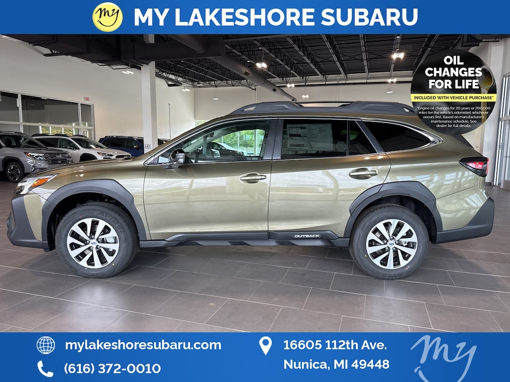 * Although every reasonable effort has been made to ensure the accuracy of the information contained on this site, absolute accuracy cannot be guaranteed. This site, and all information and materials appearing on it, are presented to the user "as is" without warranty of any kind, either express or implied, including but not limited to the implied warranties of merchantability, fitness for a particular purpose, title or non-infringement. All vehicles are subject to prior sale. Price does not include applicable tax, title, and license. Not responsible for typographical errors. **The arrival timeline is an estimate. It may vary due to circumstances beyond Subaru’s or the retailer’s control. Disclaimer: "There will be a surcharge applied to all credit card transactions that does not exceed our cost of acceptanceAutumn Green Metallic 2025 Subaru Outback Premium AWD CVT Lineartronic 2.5L 4-Cylinder DOHC 16V