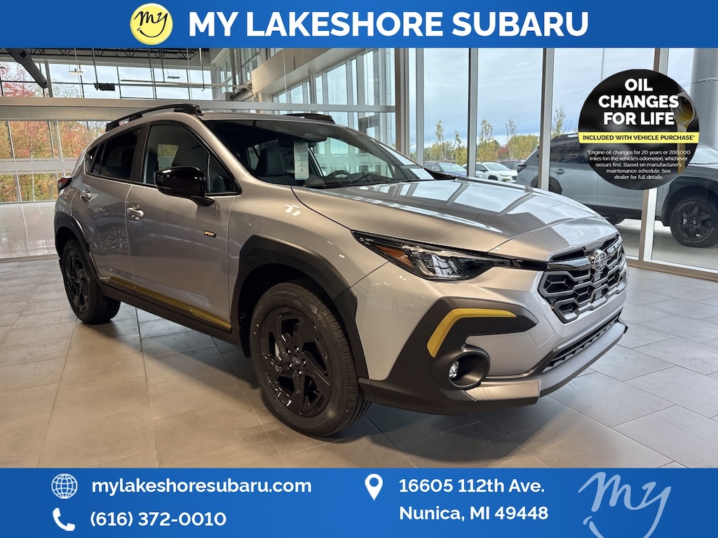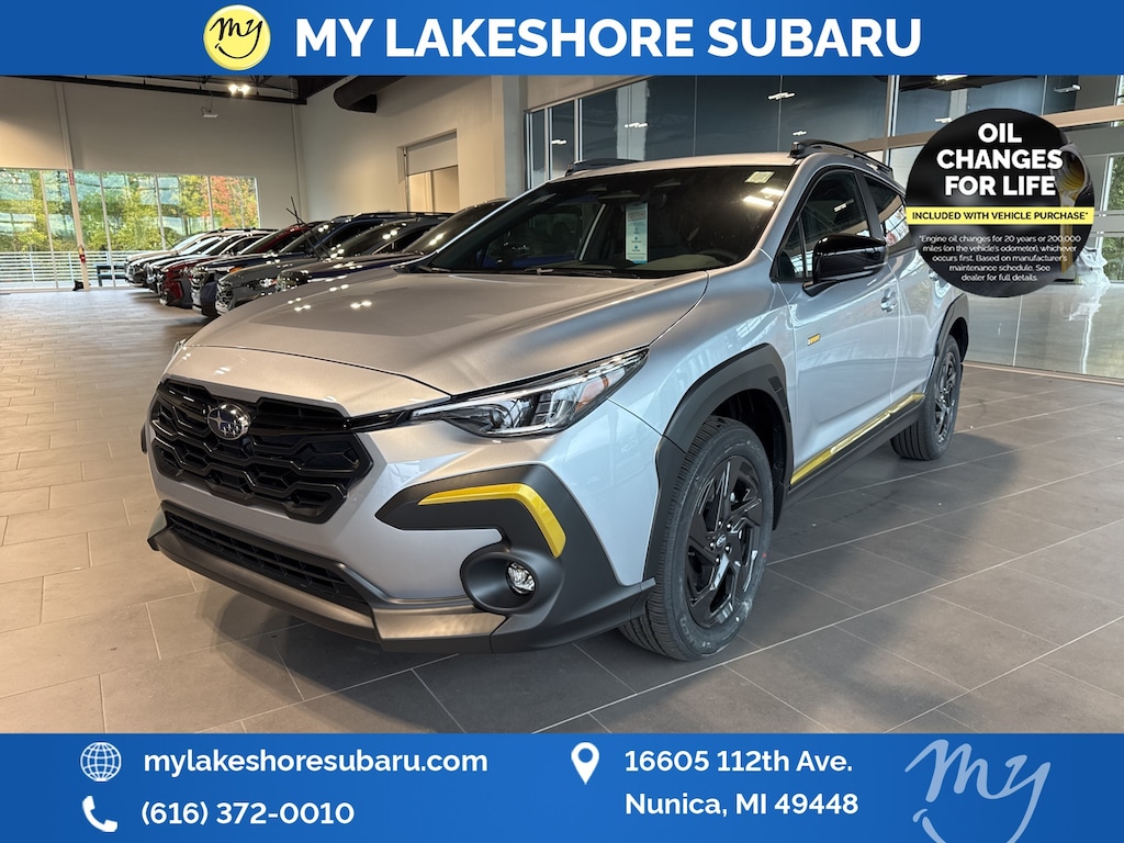 ABS brakes, Active Cruise Control, Alloy wheels, Electronic Stability Control, Front dual zone A/C, Heated door mirrors, Heated Front Bucket Seats, Heated front seats, Illuminated entry, Low tire pressure warning, Remote keyless entry, Traction control. Ice Silver Metallic 2026 Subaru Crosstrek Sport AWD Lineartronic CVT 2.5L 4-Cylinder DOHC 16V