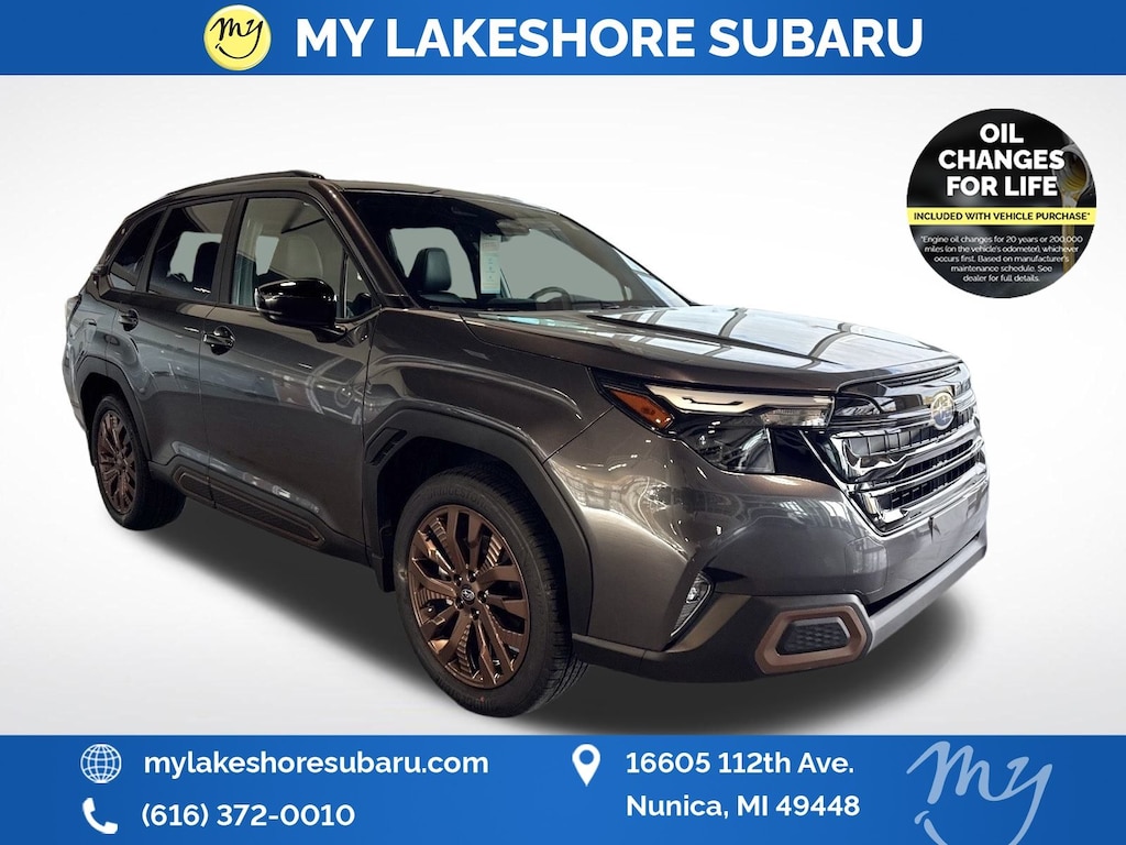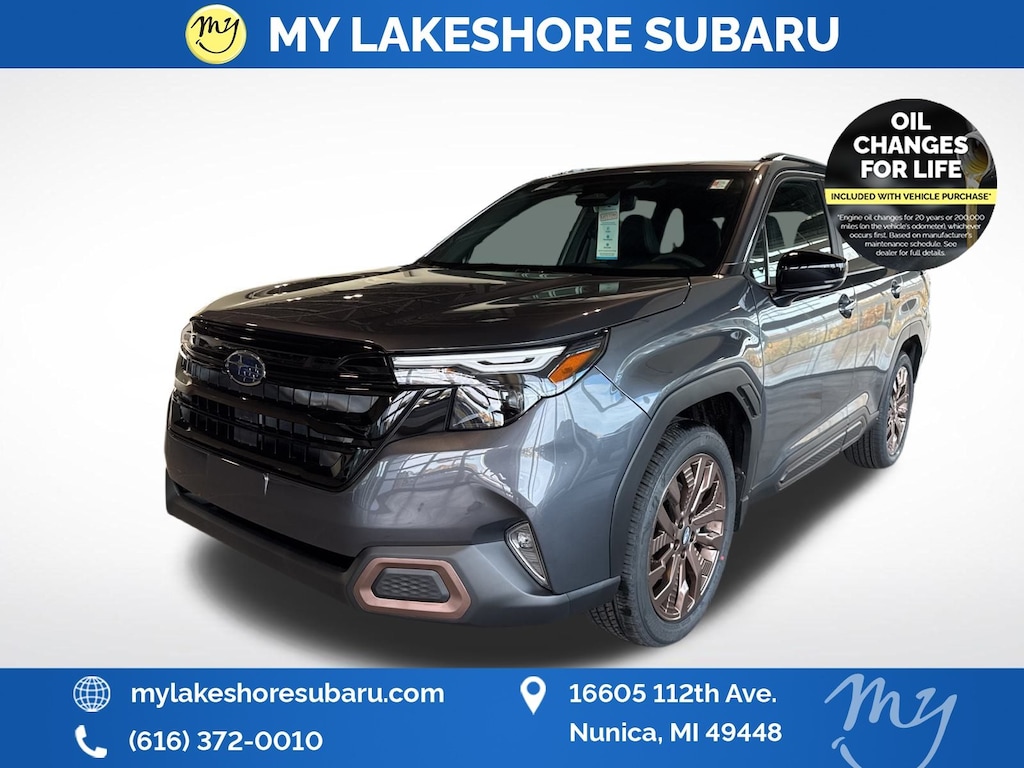ABS brakes, Active Cruise Control, Alloy wheels, Electronic Stability Control, Front dual zone A/C, Heated door mirrors, Heated Front Bucket Seats, Heated front seats, Illuminated entry, Low tire pressure warning, Remote keyless entry, Traction control. Magnetite Gray Metallic 2026 Subaru Forester Sport AWD Lineartronic CVT 2.5L 4-Cylinder DOHC 16V