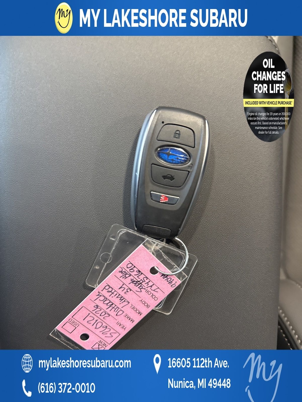 My Lakeshore Subaru offers Lifetime Nationwide Powertrain Warranty and Oil Changes for Life. Coverage on your engine, transmission and drive train, FREE 90-day full access to Sirius XM radio and coverage on all internally lubricating parts for as long as you own the vehicle in any state. Our lifetime nationwide warranty is set apart from most dealerships, because you can travel to any repair shop in the nation for repairs. Electric/Hybrid Models are not included in the lifetime powertrain warranty. Take advantage of our VIP experience by calling 231-867-6957 to schedule a test drive. Read our customer reviews and view our entire selection of preowned vehicles at www.mylakeshoresubaru.com, or stop by today, located at 16605 112th Ave, Nunica, MI 49448. Recent Arrival! 25/31 City/Highway MPG