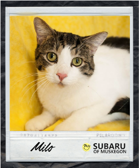 Milo is a large three-year-old LOVE BUG who gives kisses. He loves to cuddle. He likes belly rubs and has quite the personality. He loves treats and looking out the window or sitting in the sun. Milo was adopted as a kitten and returned to Heaven Can Wait when his owner fell into poor health. He is great with kids and other cats and gets along with a grouchy Bassett Hound.