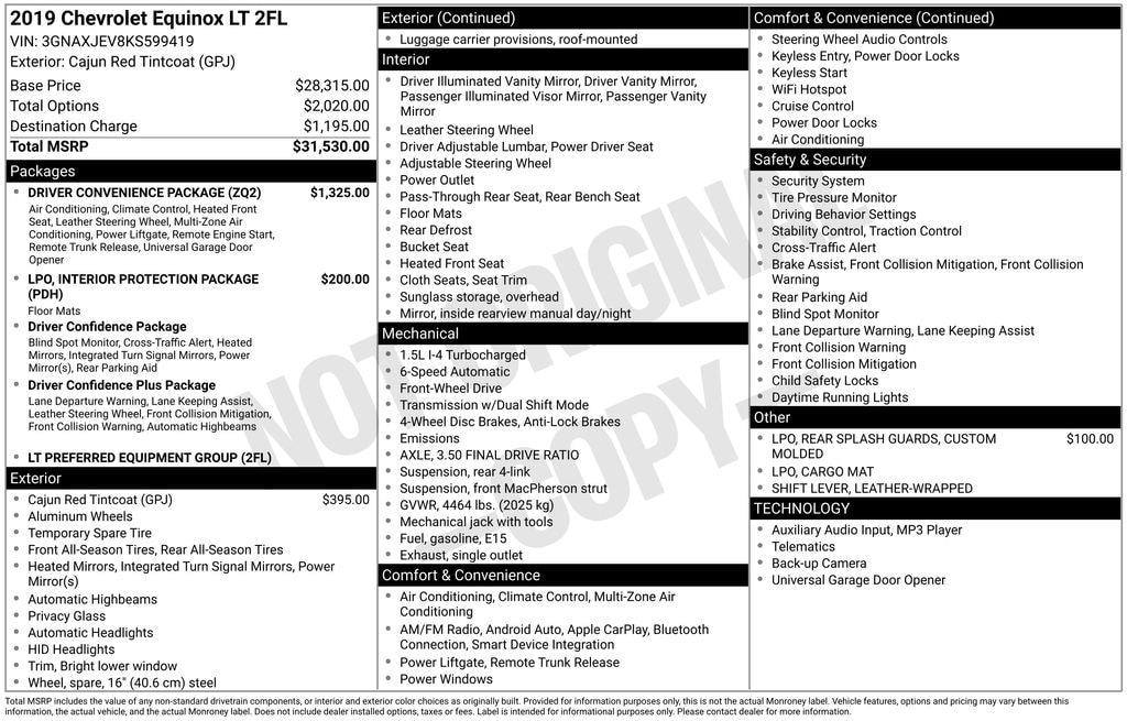 Recent Arrival! Cajun Red Tintcoat 2019 Chevrolet Equinox LT 1.5L DOHC FWD Odometer is 11294 miles below market average!