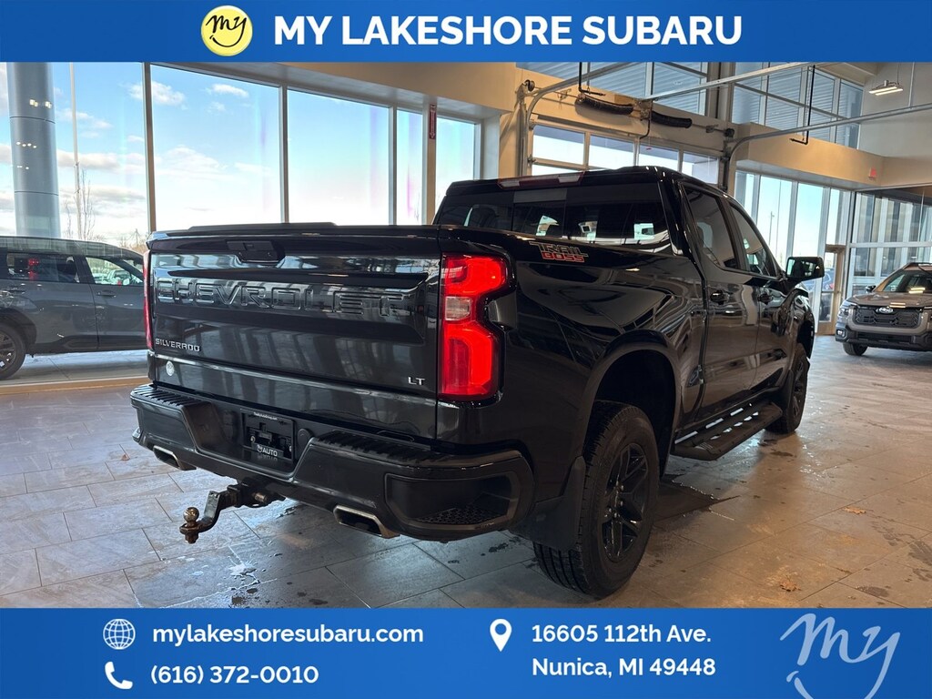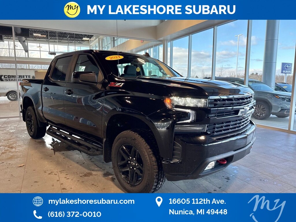 Silverado 1500 LT Trail Boss, 10-Speed Automatic, 4WD, *APPLE CARPLAY & ANDROID AUTO*, *HEATED SEATS*, *HEATED STEERING WHEEL*, *OIL CHANGES for LIFE*, 120-Volt Bed Mounted Power Outlet, 120-Volt Instrument Panel Power Outlet, 2 USB Ports, Bed Protection Package, Chevytec Spray-On Black Bedliner, Convenience Package II, HD Radio, HD Rear Vision Camera, Power Sliding Rear Window w/Rear Defogger, Premium Bose 7-Speaker Sound System, Radio: Chevrolet Infotainment 3 Plus System, Rear Wheelhouse Liners, SiriusXM w/360L, Universal Home Remote, Wireless Phone Projection. Black 2021 Chevrolet Silverado 1500 LT Trail Boss 4WD 10-Speed Automatic EcoTec3 6.2L V8