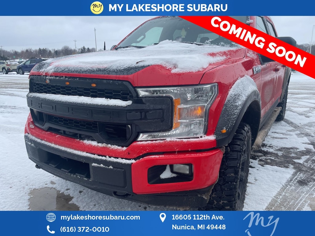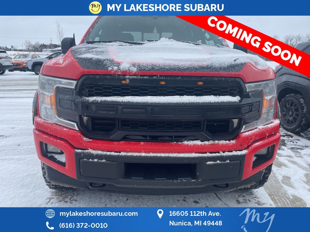 F-150 XLT, 5.0L V8, Race Red, *BLIND SPOT ALERT*, *LEATHER HEATED POWER SEATS*, *LOCAL TRADE*, *PANORAMIC MOONROOF*, *TOW PACKAGE*, 10-Way Power Driver & Passenger Seats, 2-Bar Style Grille w/2 Minor Bars Painted Dark, 2-Bar Style Grille w/Chrome 2 Minor Bars, 4.2" Productivity Screen in Instrument Cluster, Accent-Color Step Bars, Auto-Dimming Rear-View Mirror, Body-Color Door & Tailgate Handles, Body-Color Front & Rear Bumpers, Box Side Decals, Chrome Door & Tailgate Handles w/Body-Color Bezel, Chrome Step Bars, Class IV Trailer Hitch Receiver, Cloth 40/20/40 Front Seat, Equipment Group 302A Luxury, Fixed Backlight w/Privacy Glass, GVWR: 7,000 lbs Payload Package, Heated Front Seats, Leather-Wrapped Steering Wheel, LED Box Lighting, Power Glass Heated Sideview Mirrors, Power-Adjustable Pedals, Power-Sliding Rear Window, Pro Trailer Backup Assist, Rear Under-Seat Storage, Rear Window Defroster, Remote Start System, Single-Tip Chrome Exhaust, SiriusXM Radio, Trailer Tow Package, Upgraded Front Stabilizer Bar, Wheels: 18" 6-Spoke Machined-Aluminum, Wheels: 18" Chrome-Like PVD, XLT Chrome Appearance Package, XLT Power Equipment Group, XLT Sport Appearance Package. Race Red 2019 Ford F-150 XLT 4WD 10-Speed Automatic 5.0L V8