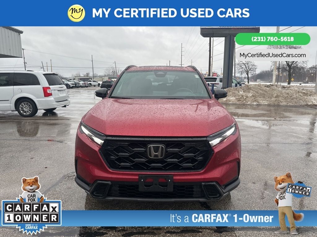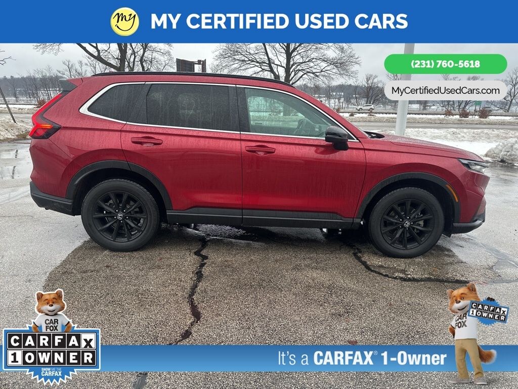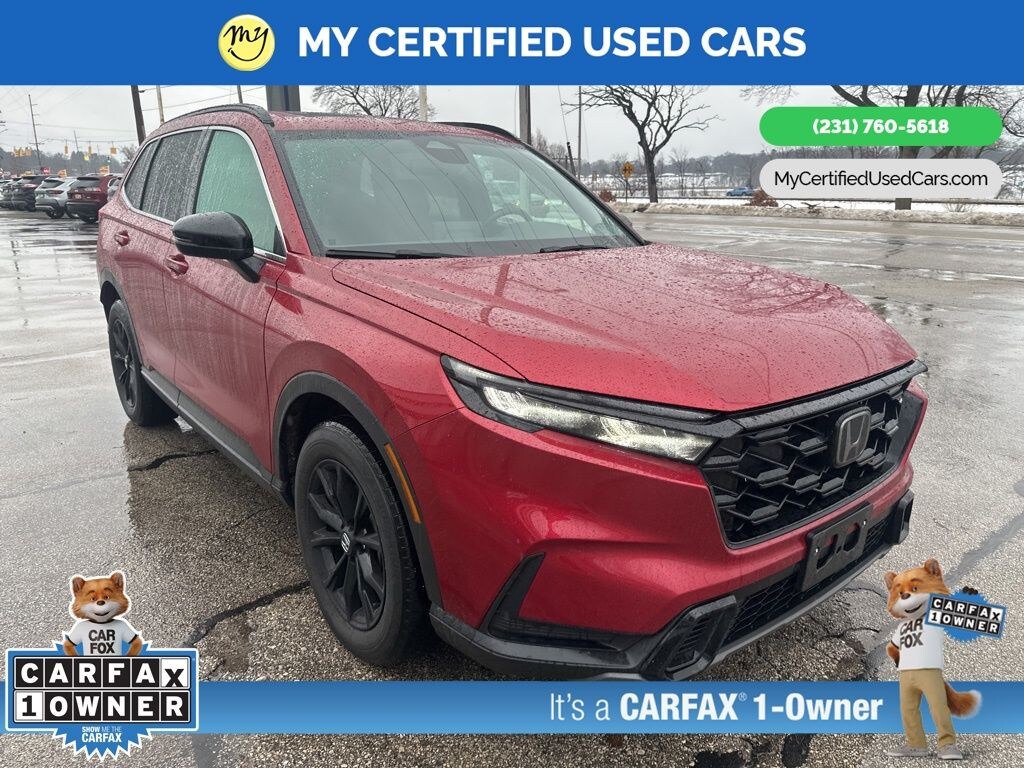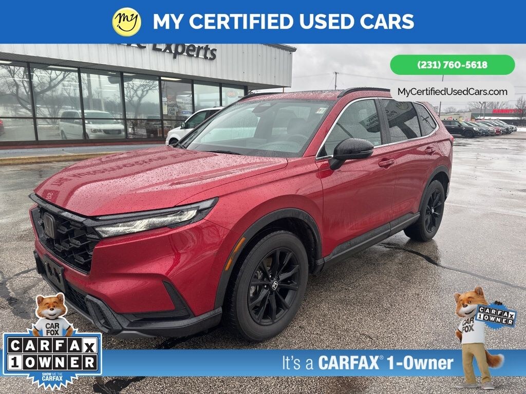 *SUPER BUY* ***2023 HONDA CR-V HYBRID SPORT AWD***, *VERY CLEAN* *FULLY SERVICED* *HEATED SEATS*, *HANDSFREE BLUETOOTH*, *LANE DEPARTURE WARNING*, *MOONROOF*, *NAVIGATION SYSTEM*, *REARVIEW CAMERA* *ADAPTIVE CRUISE*, *APPLE CARPLAY & ANDROID AUTO*, Adaptive Cruise Control: Adaptive Cruise Control (ACC) with Low-Speed Follow, Auto High-beam Headlights, Blind Spot Information (BSI) System warning, Brake assist, Electronic Stability Control, Exterior Parking Camera Rear, Front dual zone A/C, Heated Front Bucket Seats, Power moonroof, Wheels: 18" Berlina Black Alloy. MY Certified Used Cars of Muskegon is your #1 choice in Michigan to get the BEST PRICE on used vehicles and BEST value for your trade. The MY Certified Used Cars team is ready to provide you with a world-class experience, ensuring that you find the perfect vehicle that fits all your needs. Every vehicle has been through a full safety inspection completed by certified technicians and fully detailed. We sell many makes and models, Pre-Owned Vehicles with years from 2025-2024-2023-2022-2021-2020-2019-2018-2017-2016-2015-2014-2013-2012-2011-2010-2009-2008-2007 and all makes Audi, BMW, Chevrolet, Toyota, Volkswagen, Kia, Hyundai, Mercedes, Dodge, Chrysler, Jeep, Ram, Lincoln, Honda, Subaru, and many models like Bronco, Bronco Sport, Edge, Escapes, Expedition, Explorer, Fusions, Focus, Flex, F-150 Series, F-250, F-350, Super Duty Diesel Trucks, Maverick, Mustang MACH-E, Mustang, Ranger, Transit, Wrangler, Grand Cherokee, Grand Cherokee L, Wagoneer, Gladiator, Grand Caravan, RAM, RAM HEMI, and more. Take advantage of our VIP experience by calling 231-760-5618 to schedule a test drive. Read our customer reviews at www.mycertifiedusedcars.com/testimonials or view our entire selection of preowned vehicles at www.mycertifiedusedcars.com, or stop by today, located at 3692 Airline Rd. Muskegon, MI 49444. New Price! CARFAX One-Owner. Red 2023 Honda CR-V Hybrid Sport AWD eCVT 2.0L I4 DOHC 16V