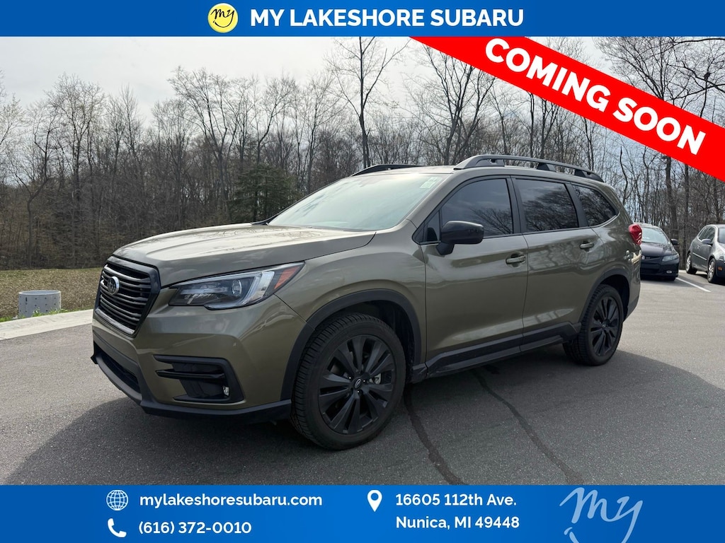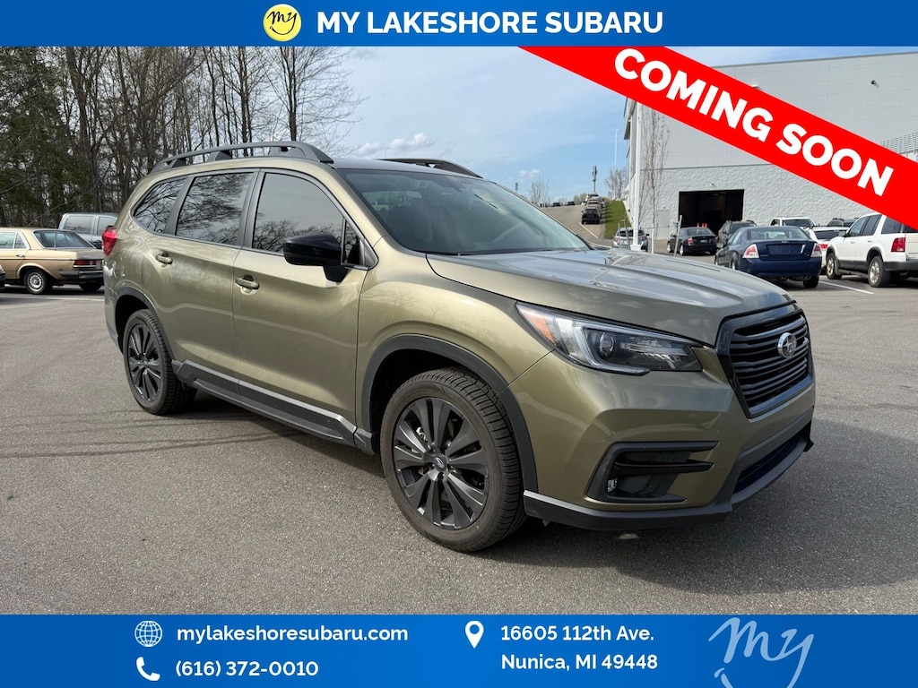 Ascent Onyx Edition, Autumn Green Metallic, *ALL WHEEL DRIVE*, *APPLE CARPLAY & ANDROID AUTO*, *BACKUP CAMERA*, *BLIND SPOT MONITORING*, *EYESIGHT Driver Assist*, *HEATED SEATS*, *LANE DEPARTURE WARNING*, *LOCAL TRADE*, *OIL CHANGES for LIFE*. Certified. Autumn Green Metallic 2022 Subaru Ascent Onyx Edition AWD Lineartronic CVT 2.4L 4-Cylinder DOHC 16V