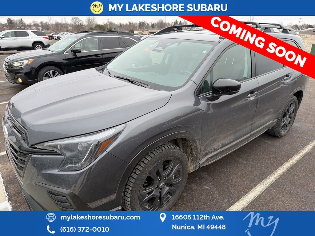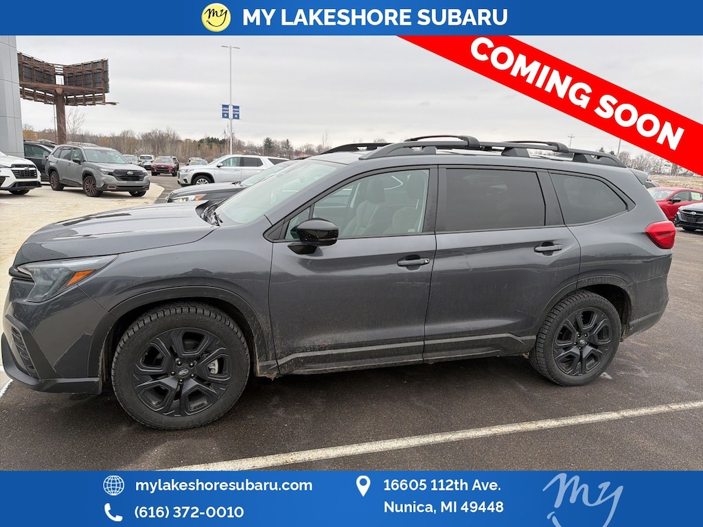 Ascent Onyx Edition, Magnetite Gray Metallic, *ALL WHEEL DRIVE*, *APPLE CARPLAY & ANDROID AUTO*, *BACKUP CAMERA*, *BLIND SPOT MONITORING*, *EYESIGHT Driver Assist*, *HEATED STEERING WHEEL*, *LANE DEPARTURE WARNING*, *LEATHER HEATED POWER SEATS*, *LOCAL TRADE*, *OIL CHANGES for LIFE*, *PANORAMIC MOONROOF*, *TOW PACKAGE*. Certified. Magnetite Gray Metallic 2024 Subaru Ascent Onyx Edition AWD Lineartronic CVT 2.4L 4-Cylinder DOHC 16V