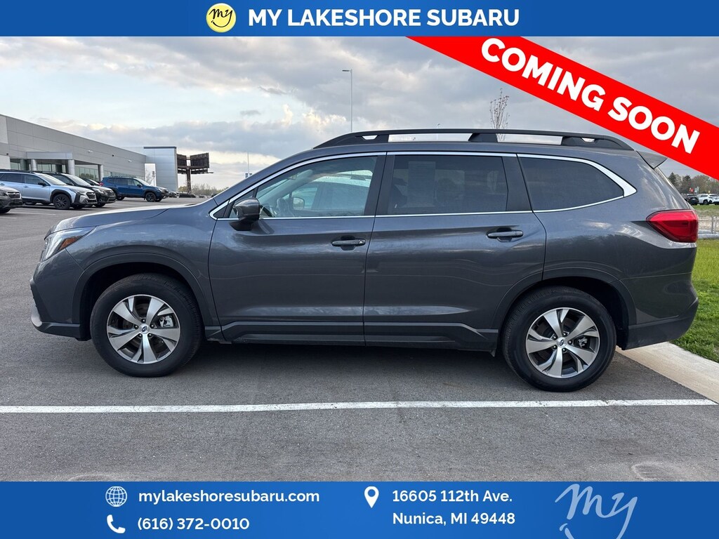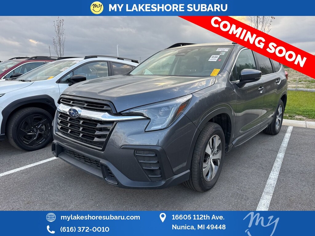 Ascent Premium, Magnetite Gray Metallic, *ALL WHEEL DRIVE*, *APPLE CARPLAY & ANDROID AUTO*, *BACKUP CAMERA*, *BLIND SPOT MONITORING*, *EYESIGHT Driver Assist*, *HEATED SEATS*, *LANE DEPARTURE WARNING*, *OIL CHANGES for LIFE*. Certified. Magnetite Gray Metallic 2025 Subaru Ascent Premium AWD Lineartronic CVT 2.4L 4-Cylinder DOHC 16V