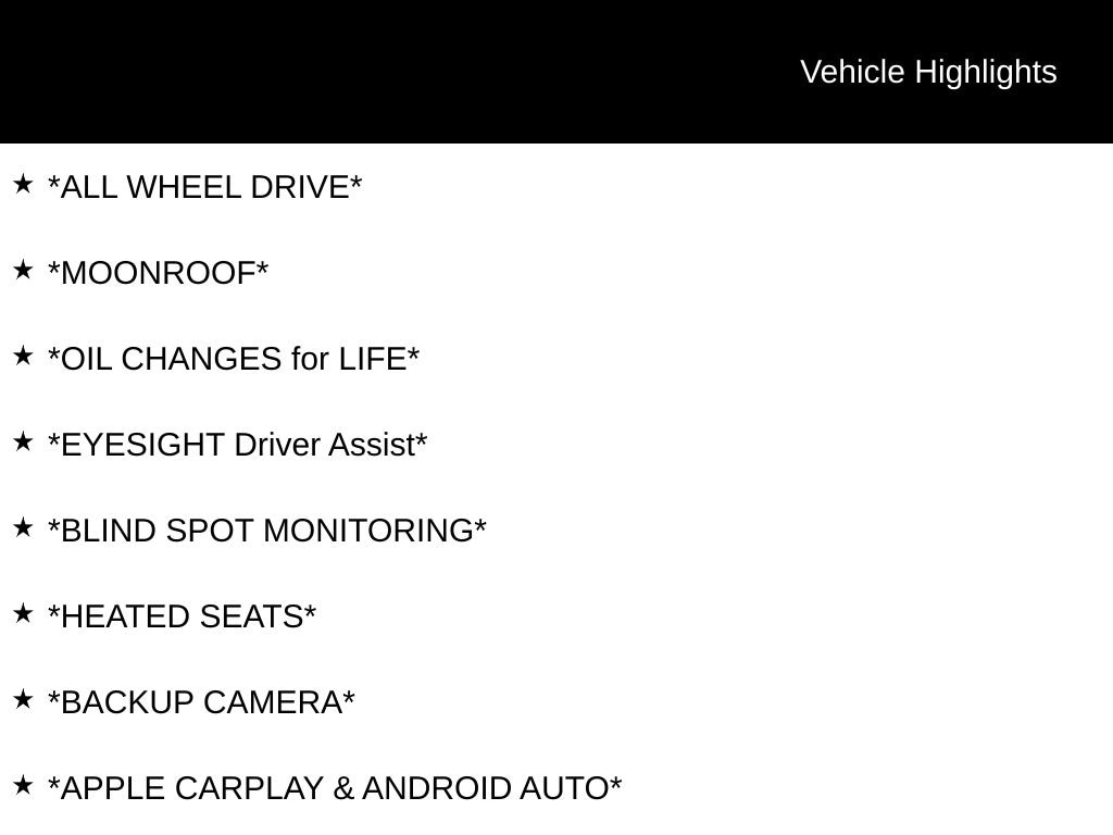 My Lakeshore Subaru is proud to service customer's saving you time & money on any Pre-owned vehicle! See dealer for complete details, dealer is not responsible for pricing errors, all prices, plus tax, title, plate, and $280 documentation fees. Serving Nunica and all of our surrounding cities like Norton Shores, Grandville, Greenville, Grand Rapids, Lansing, Kalamazoo, Walker, Comstock Park, Grand Haven, Holland, Wyoming, North Muskegon, Fruitport, Hudsonville, Spring Lake, Wolf Lake, Rockford, Zeeland, Kent City, Sparta, Coopersville, Allendale, Whitehall, and anywhere in the great state of Michigan. Buy from My Lakeshore Subaru in Nunica, MI and you will receive a best-in-class experience. Some of our used vehicles may be subject to unrepaired safety recalls. Check for a vehicle's unrepaired recalls by VIN at http://vinrcl.safercar.gov/vin/.